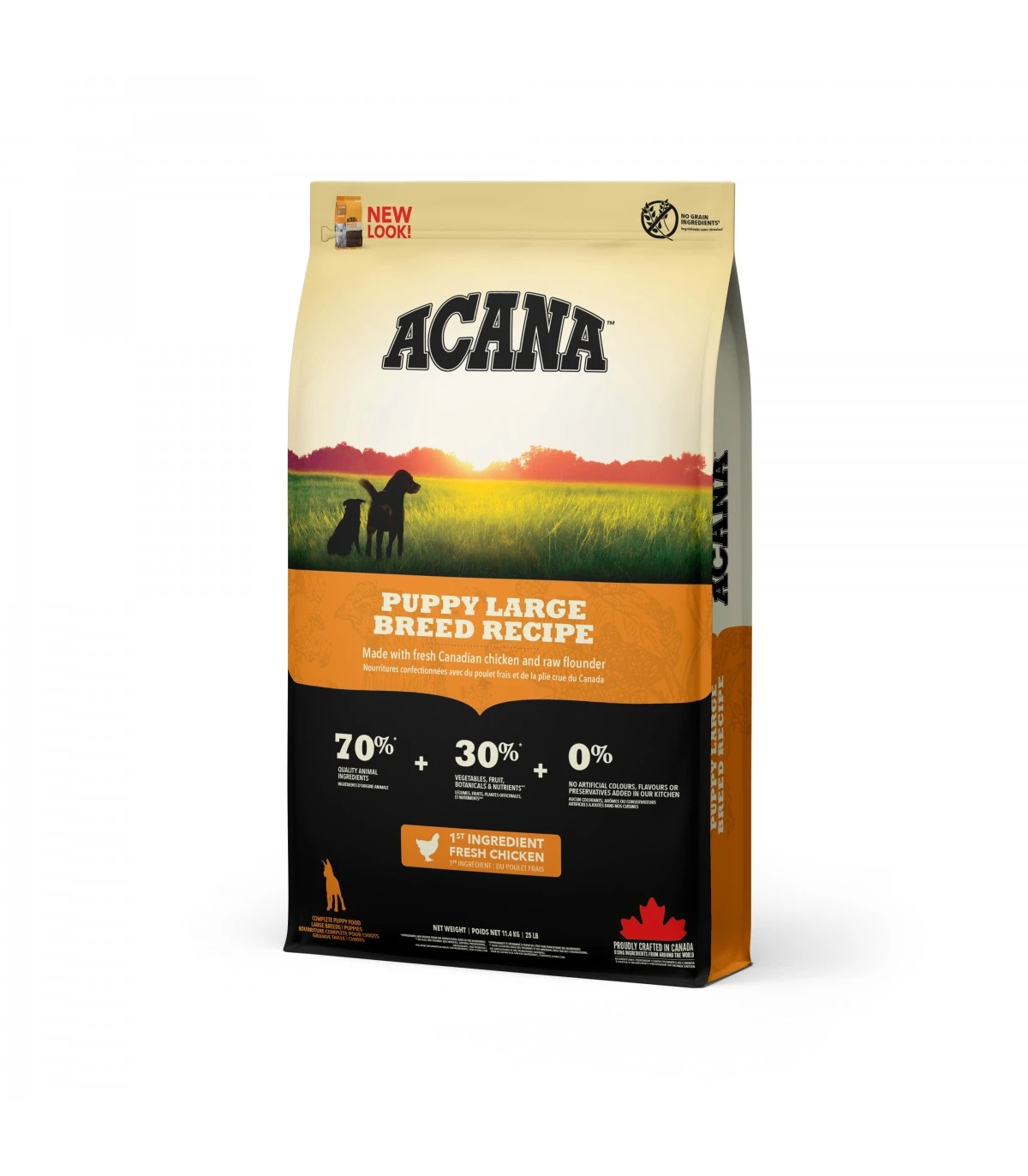 I cuccioli di taglia grande hanno esigenze nutrizionali specifiche e necessitano di un alto apporto di proteine da ingredienti animali per sviluppare e mantenere una massa muscolare magra. ACANA Puppy Large Breed Recipe include pollo, passera del Pacifico pescata in natura e uova ricche di nutrienti, per fornire al cucciolo tutto ciò di cui ha bisogno per crescere forte e in salute.